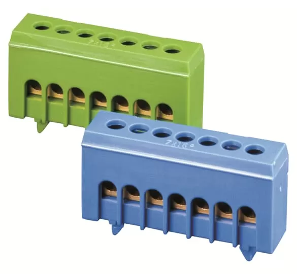 Diese Neutral- und Schutzleiterklemmen mit Isolierträger von ABB eignen sich perfekt für die schnelle Befestigung an DIN-Schienen EN50022. Der Neutralleiter ist mit einem Isolierträger blau ausgestattet und die Version C ist zudem fingersicher. Der Leiteröffnung ist einseitig geschlossen.