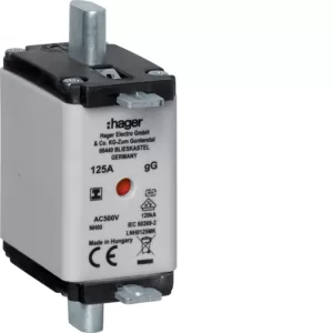 Der Hager NH-Sicherungseinsatz NH00 gG 500V 125A Iso-Griff LNH0125MK ist eine kombinierte Sicherung für Ströme bis zu 125 A. Er verfügt über eine Ganzbereichs-Leitungsschutz- und Geräteschutzfunktion, ein Kombikennmelder und eine Bemessungsspannung von 500 V. Der Einsatz ist mit einem isolierten Metallgriff ausgestattet.